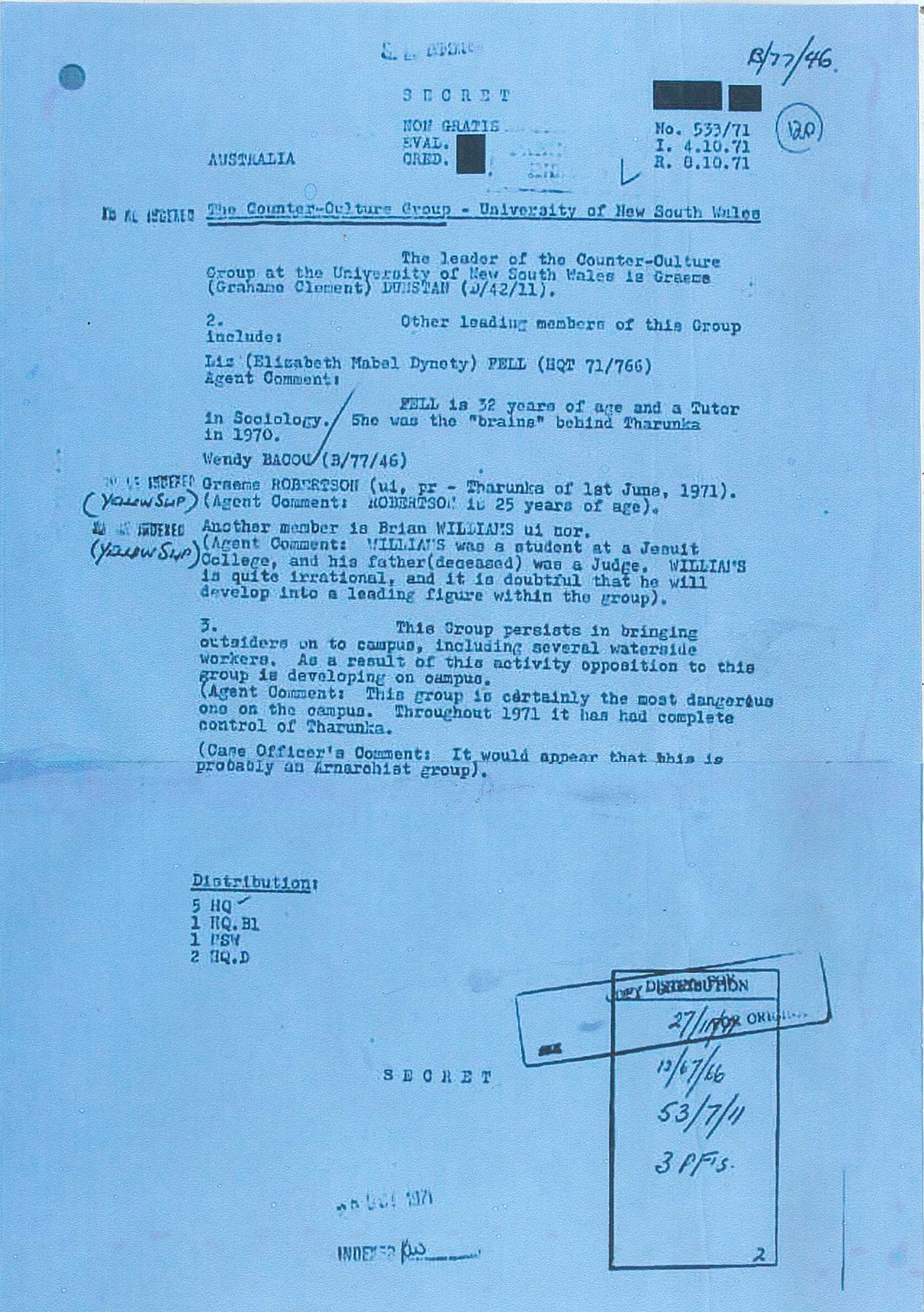 Comment on ASIO File No. 533/71 by Graeme Dunstan