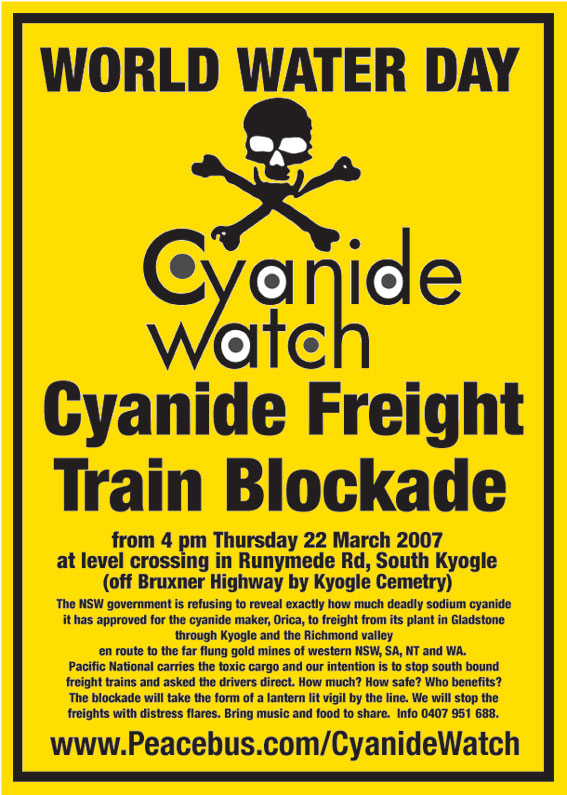 "The NSW Labor government have been reluctant to reveal how much cyanide it has approved for freight through the Richmond Valley," said blockade organiser, Graeme Dunstan of Cyanide Watch.