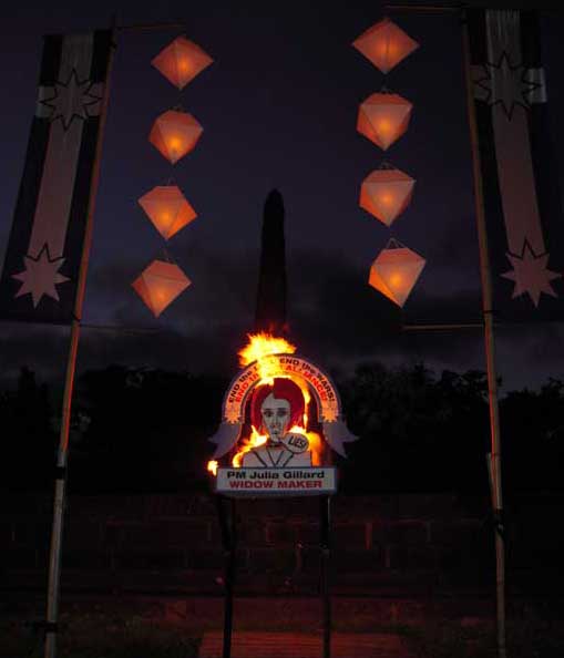 An effigy of PM Julia Gillard, Widow maker was burnt at dawn