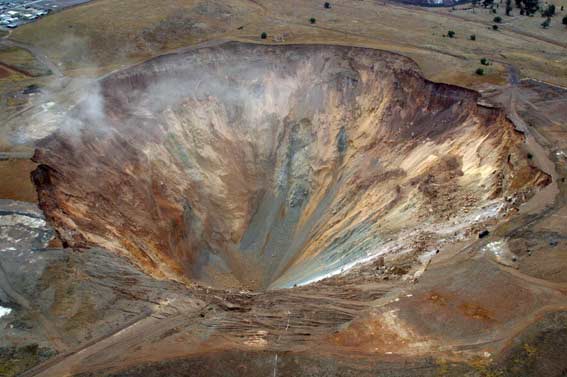 North Parkes has two 2Êopen cut pits (top two pics above) and a third (lowest pic) which is actually the surface subsidence due to a block caving operation and is designed to look like that: no fault in construction. Looks ugly to me. Three pockmarks on the divine face of creation. Information on the NorthParkes can be found at: