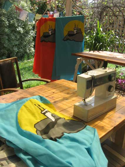 As a follow up I offered to make up a batch of Rising Tide flags to make their actions visually distinctive. My daughter Softly Dunstan of Mighty Nice Studio, Leichhardt, did the design and the screen printing, painting and sewing was done in Canberra.