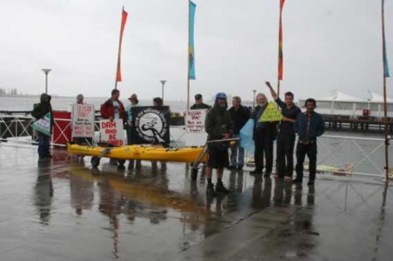 But dams are not central to Rising Tide and both Steve and George were up to their ears with demands of action organising and parenting. So I put up my hand and offered to represent Rising Tide with the presence of the new flags. George and Steve were only too pleased to throw me the ball.