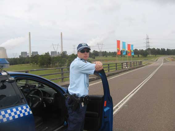 Tim introduced me to his hatless and somewhat overweight colleague as the man who travels around with flags. Then he introduced me to his colleague, Superintendent Des Organ, the Hunter Valley Area Commander.