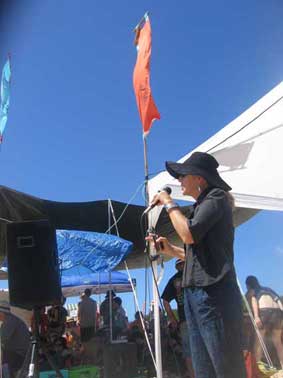 Stealing our thunder, I thought, and got on the Peacebus.com PA and asked them to move aside, lift their blockade and let us do what we had come to do. No deal. No laughs from them either.