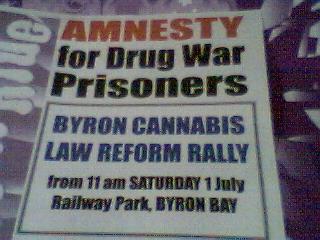 Still sorting out bugs, we didnÕt get out Blues Brothers horns working, but we did raise an audience spruiking without PA. After my first effort, one of the listeners approached me. "I am a speech therapist," she said. "The anger in your voice is holding people back", she advised. So it was that in Byron Bay, land of healers, I was given a voice coach and next time I tried spruiking, my more heart centred voice held a crowd of about 30 people as I rapped about the Drug War making Australia a convict colony of globalism.