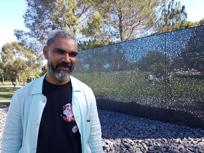 The wall speaks of the darkness and denial of the slaughter of first peoples by Native Police in the employ of murderous, land thieving British settlers.